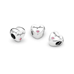 Show your daughter how much she means to you and seal your precious bond with this sweet sterling silver daughter charm, embellished with a sparkling pink stone.