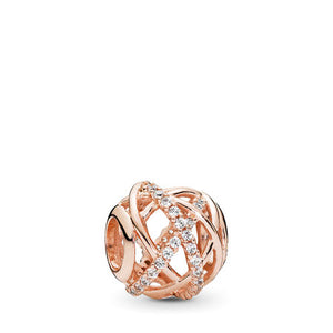 Give in to the magic of this charm with sparkling and polished lines. Finely crafted in Pandora Rose™ , a 14k rose gold-plated unique metal blend, the abstract design weaves together strands of polished metal and shimmering cubic zirconia stones for an eye-catching effect. Mix with the matching charms in other metals for a modern, multi-dimensional look.