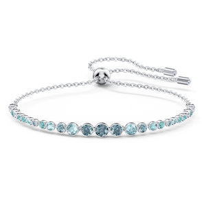 This bracelet by Swarovski creates a modern, attractive look through a beautiful color scheme. Numerous sparkling crystals shimmer in blue and green hues, skillfully complemented by clear crystals. The size of the crystals increases towards the center of the bracelet to great visual effect. A perfect fit for casual everyday outfits, either by itself or combined with additional bracelets for a trendy stacking look.