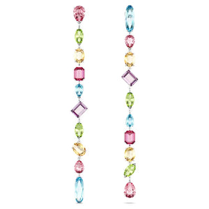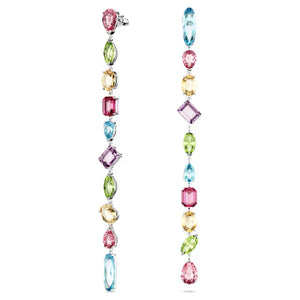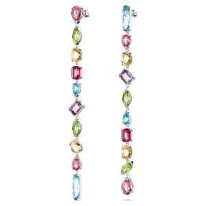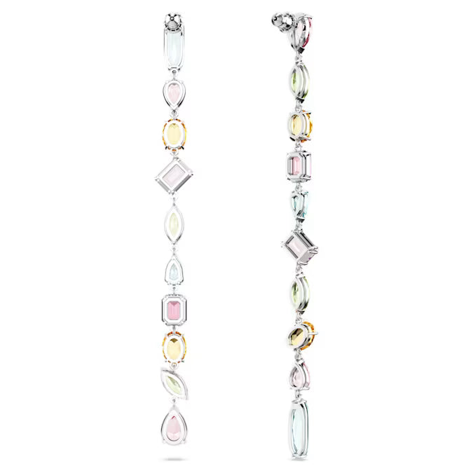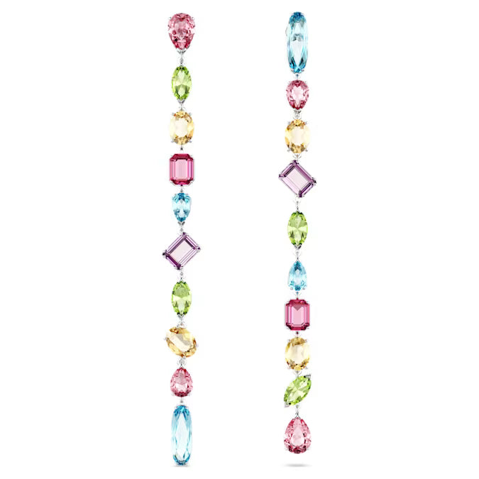 These playful Gema drop earrings are crafted with long strands of faceted crystals to catch the light. Each rhodium plated piece is adorned with a mix of stone cuts that glisten with a variety of vibrant hues. The effect is one of unexpected beauty, with mood-boosting colors guaranteed to bring joy to your day.