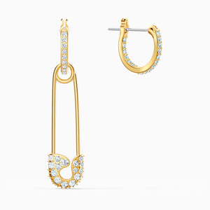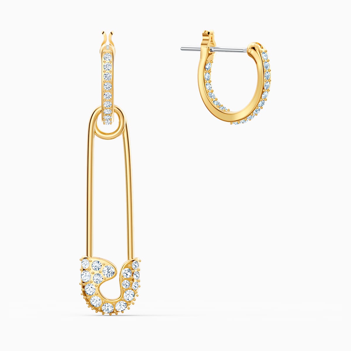 This pair of gold-tone plated Swarovski pierced earrings is covered in gleaming crystals, adding urban character and delicate sparkle. The hoop earring features a safety pin motif, which can be removed. Wear them together with other jewelry or solo for a more pared-back look. These earrings from our So Cool family are a beautiful gift for a special person or for yourself.