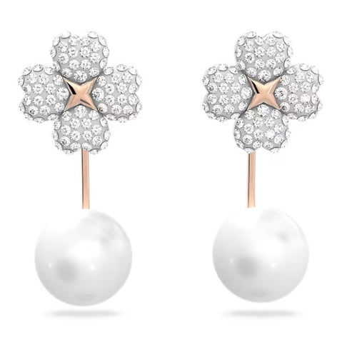 Latisha hoop earrings Flower, White, Rose gold-tone plated