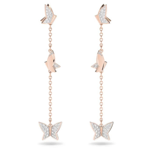 Lilia drop earrings Butterfly, Long, Multicolored, Rose gold-tone plated