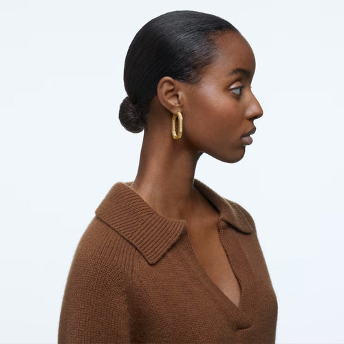 Dextera hoop earrings Octagon, Pavé, Medium, White, Rose gold-tone plated