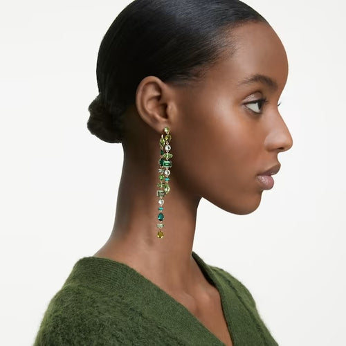 Gema drop earrings Asymmetrical, Long, Green, Gold-tone plated