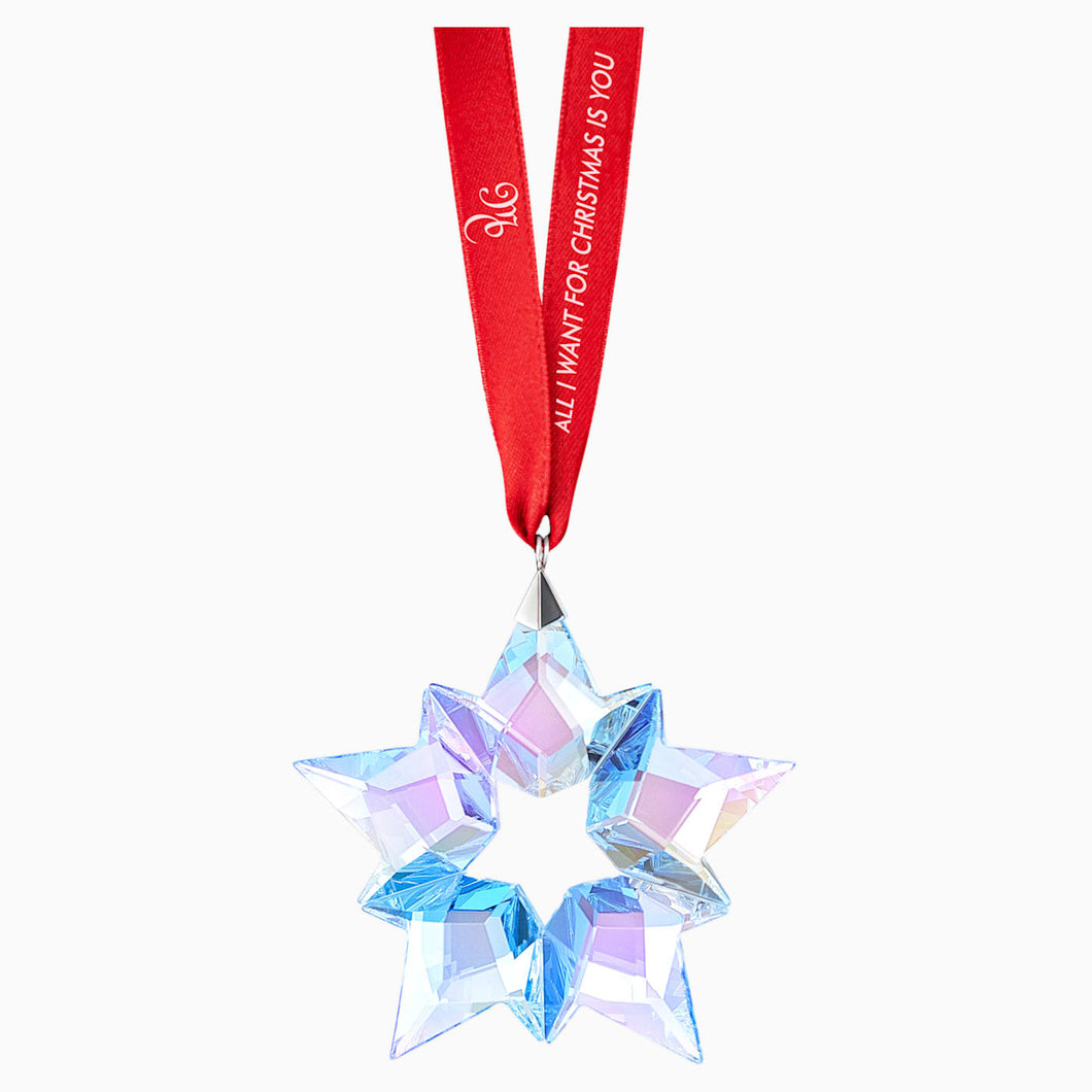'All I Want For Christmas Is You' is the famous Christmas song performed by Mariah Carey and was released in 1994. It is the best-selling modern-day Christmas song and it celebrates its 25th anniversary in 2019. The red satin ribbon is featuring the famous song title together with a Mariah Carey branding. Mariah Carey has collaborated with Swarovski to create this premium star-shaped ornament. The Blue Aurora Borealis effect enhances the brilliance and adds color vibrancy which makes this ornament a perfect gift for collectors and fans.