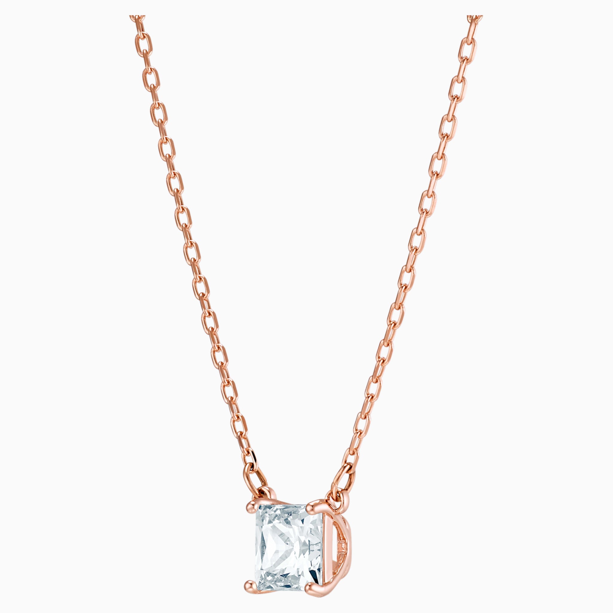 Keep it chic and simple with the Attract Necklace. Timeless and elegant, the rose-gold tone plated design features a dazzling square-cut stone. Ideal for any occasion, it is a must-have staple for any jewelry collection and would make a great gift. Easy to mix and match with other Swarovski jewelry pieces.