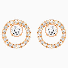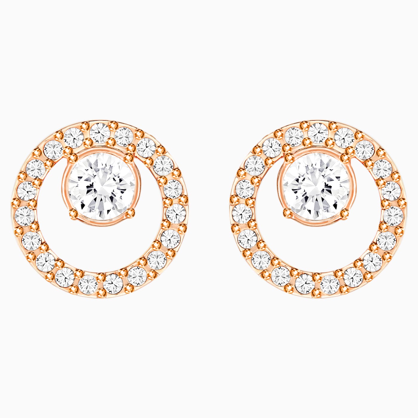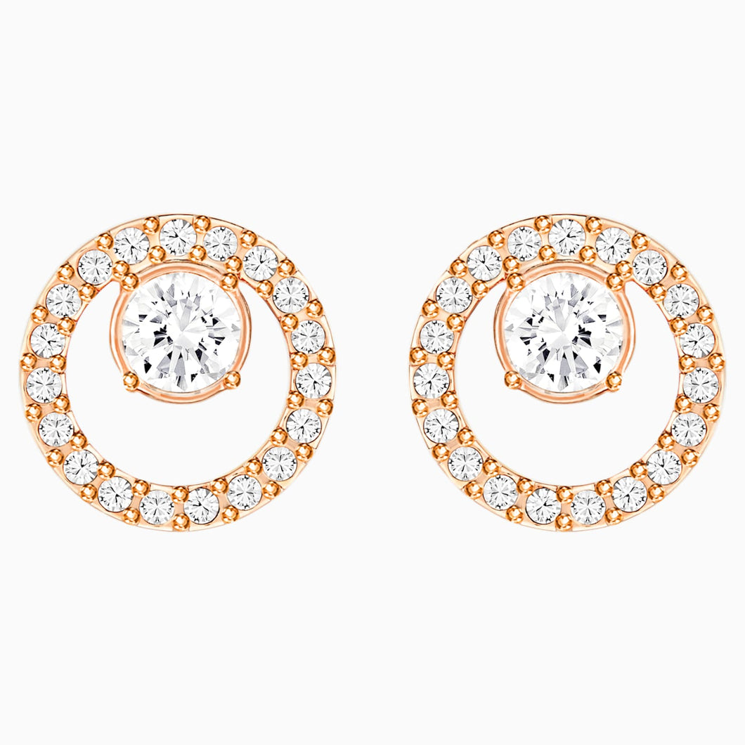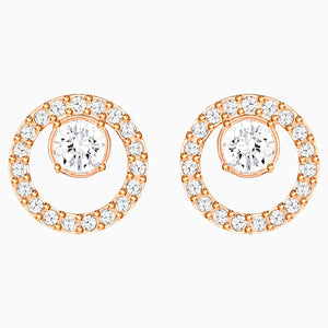 Delicate circle silhouettes inject timeless elegance into any look, and this refined design adds a beautiful sparkle too. Rose gold-plated metal lends it a modern, feminine touch. Easy to combine with other Swarovski jewelry, the earrings come as a pair and measure 1 cm.