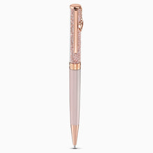 This refillable ballpoint pen by Swarovski features a powerful and romantic design. The color scheme of rose-colored lacquered metal and rose-gold tone plating lends it an air of elegance. Numerous Swarovski crystals fill the pen, making it sparkle brilliantly. A small, heart-shaped charm showing the word 'LOVE' is surrounded by beautiful crystals. The perfect romantic gift for a special someone.