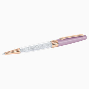 Discover the next generation of our bestselling Crystalline Stardust Pen. Ideal for gifting, this ballpoint pen now comes with a clip and a new metal plating. It features a light lilac lacquered metal barrel with rose gold-plated metal accents, a central ring showing the Swarovski logo, and sparkling crystals, set using the Crystalline technique. The high-quality refill can be replaced.