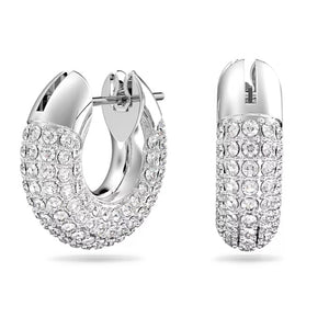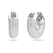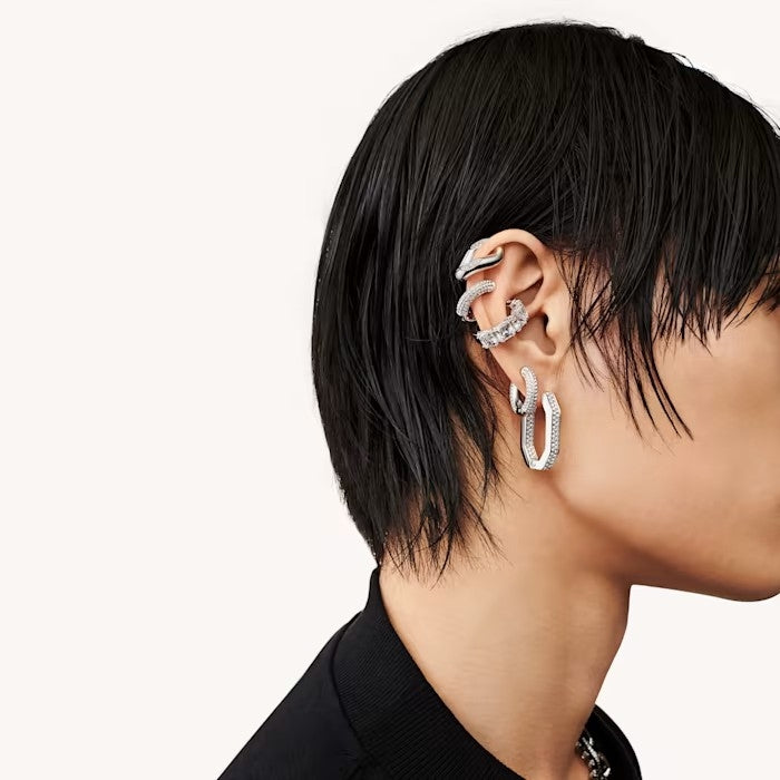 A modern spin on classic hoop earrings, this genderless pair will lend a dynamic touch to any outfit. Its sculptural design celebrates Swarovski's iconic pavé technique with glittering foiled crystals set against a rhodium plated frame. Not just for daytime, wear this statement duo with after-dark looks, too. These earrings are part of the Dextera family, designed by Creative Director Giovanna Engelbert for Collection II.