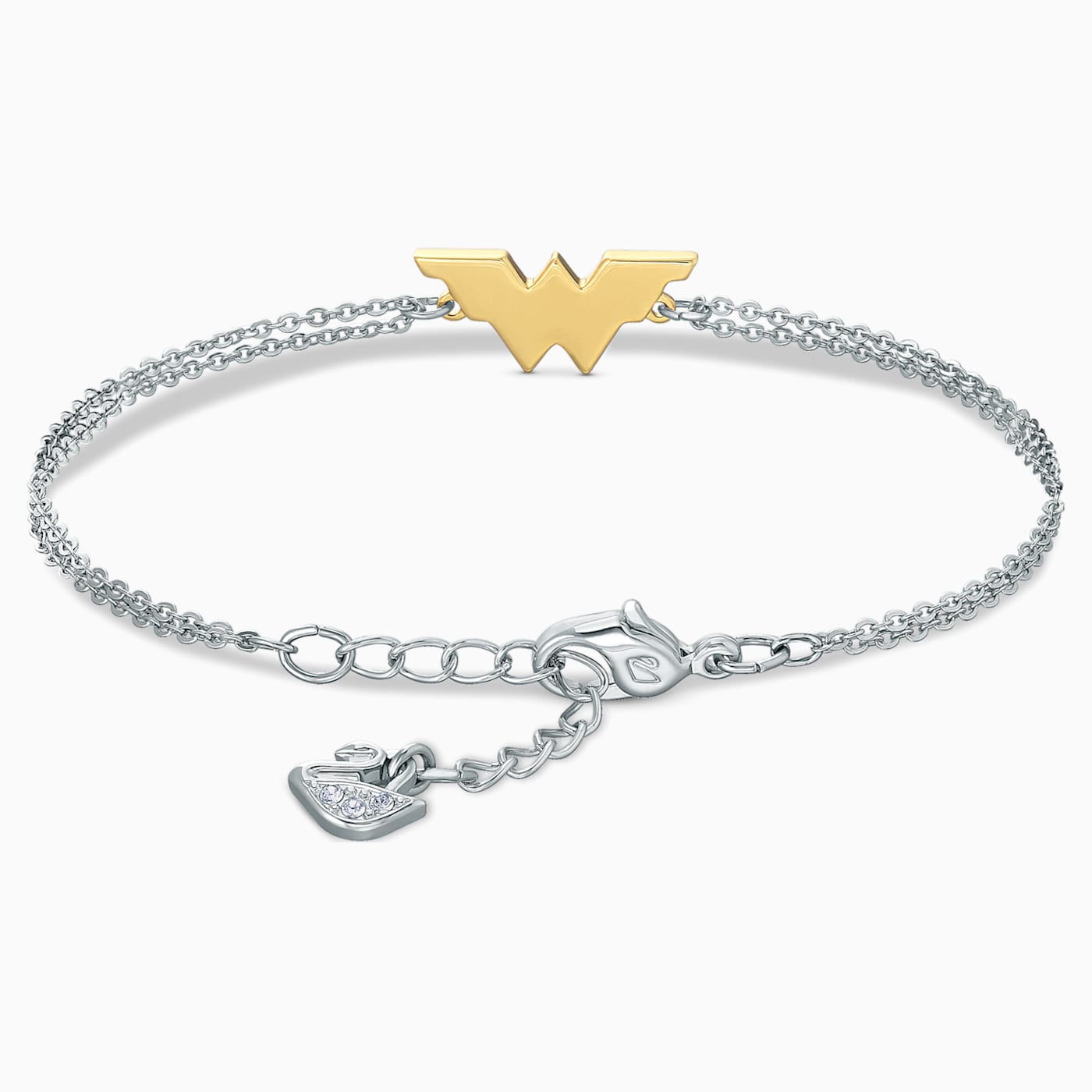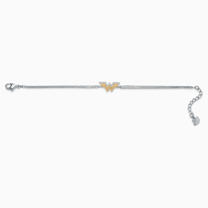 Inspired by the popular DC Super Hero, this bracelet by Swarovski pays homage to Wonder Woman in a chic and fashionable way. It features the heroine's symbol from the new movie 'WONDER WOMAN 1984' in sparkling Swarovski crystals, fixed to two rhodium-plated chains. A unique look for every true fan.