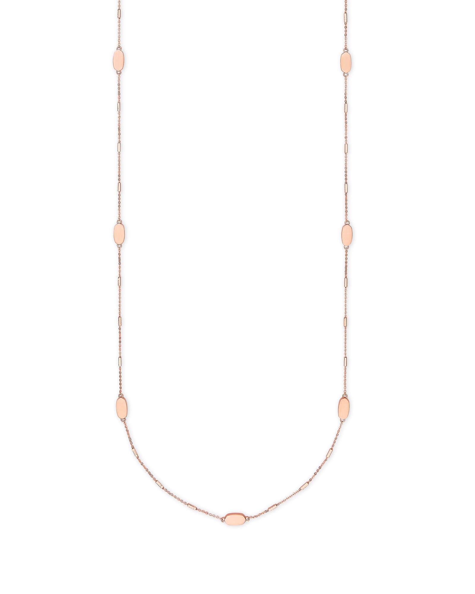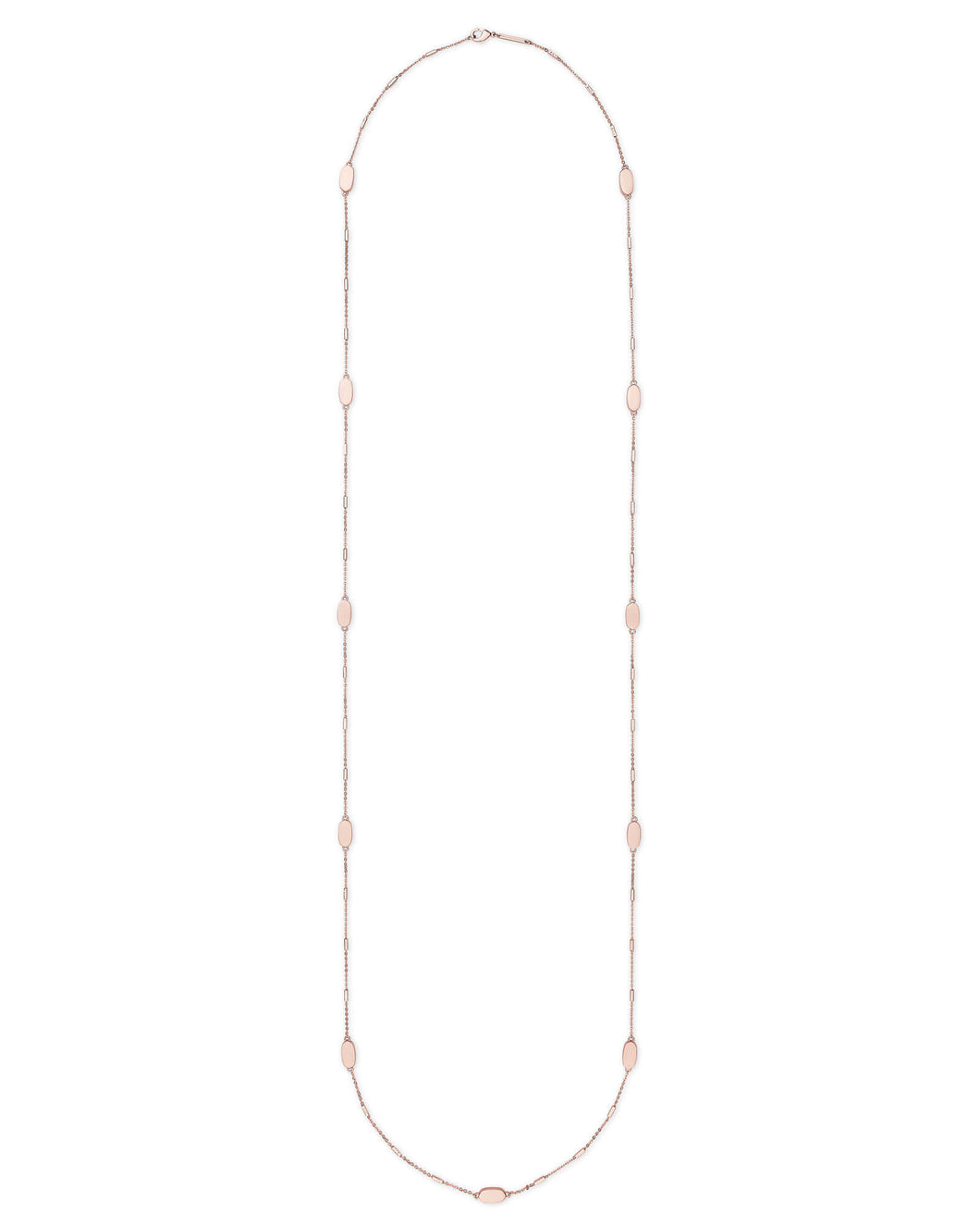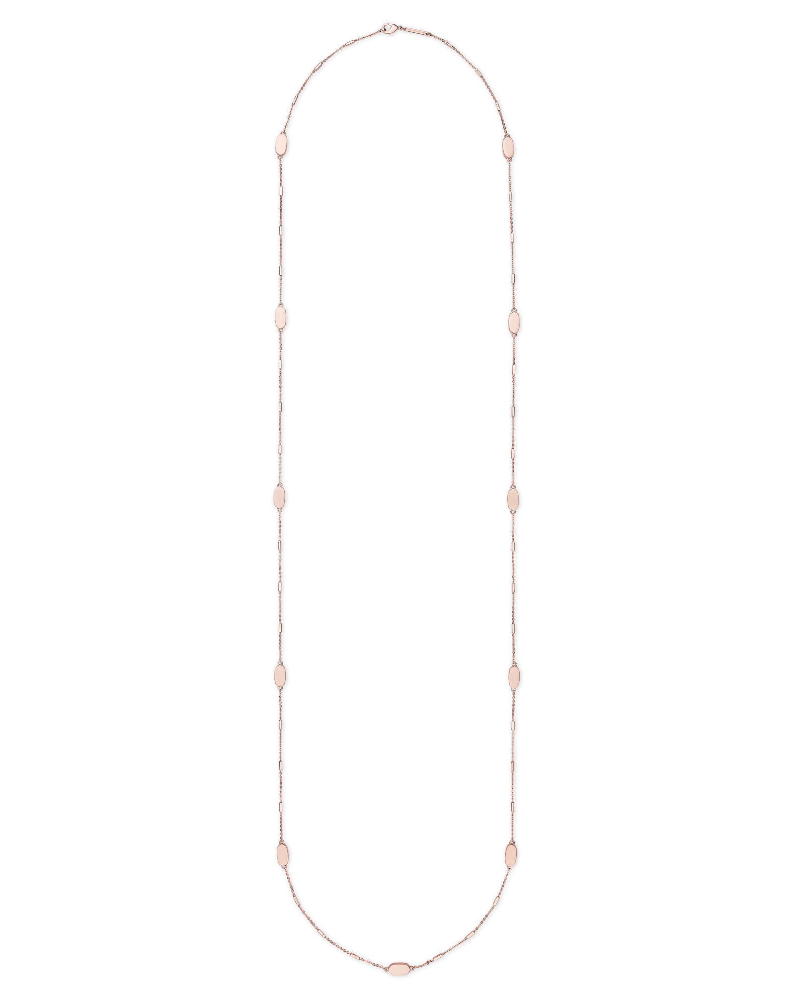 Meet your new everyday layerable: the Franklin Long Necklace in Rose Gold. This long necklace features a thin metallic chain and dainty accents in our signature shape, and effortlessly complements any style. Make accessorizing easy by adding the Franklin Long Necklace to your wardrobe.