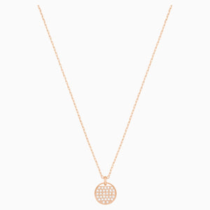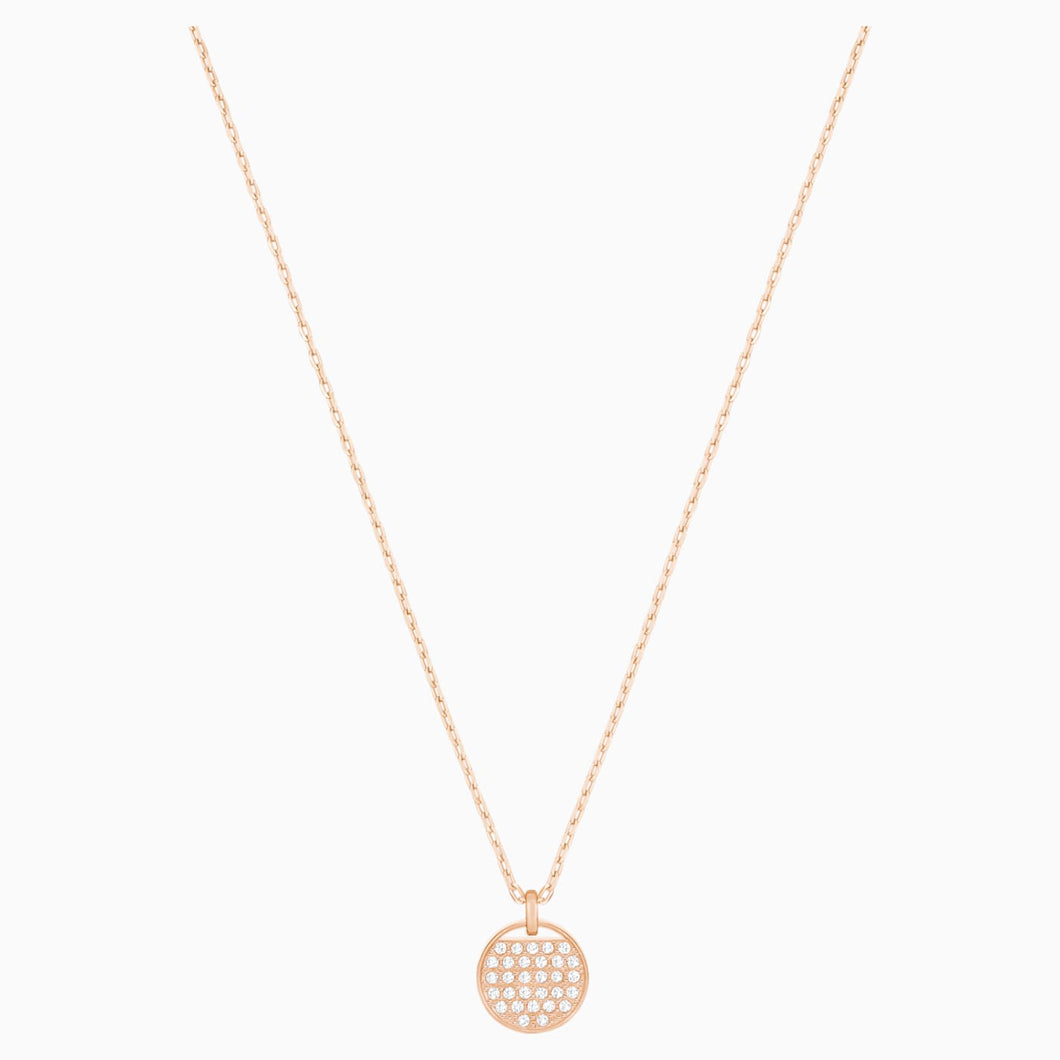 Elegant and easy-to-wear, this circle pendant is perfect for mixing and matching with other styles of different lengths for an on-trend multi-layered look. It features a disc embellished with sparkling crystal pavé, which dangles from a delicate rose gold-plated chain.