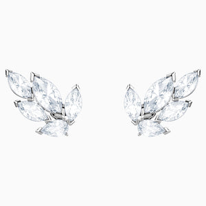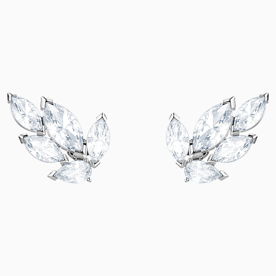 This glamorous pair of pierced earrings is inspired by fine jewelry and frosty winter leaves. They make a statement of timeless elegance with their brilliant sparkle and rhodium plating. Perfect for parties and gifting.