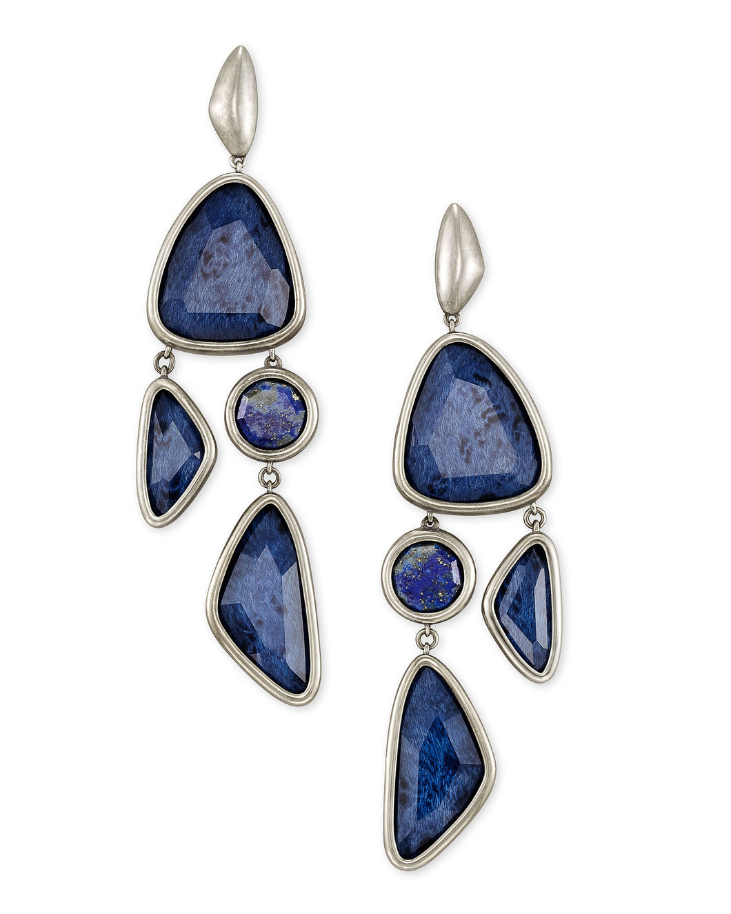 The Margot Vintage Silver Statement Earrings in Navy Wood are all about beautiful movement and an eclectic feel, with custom shapes inspired by pebbles found on the beach.