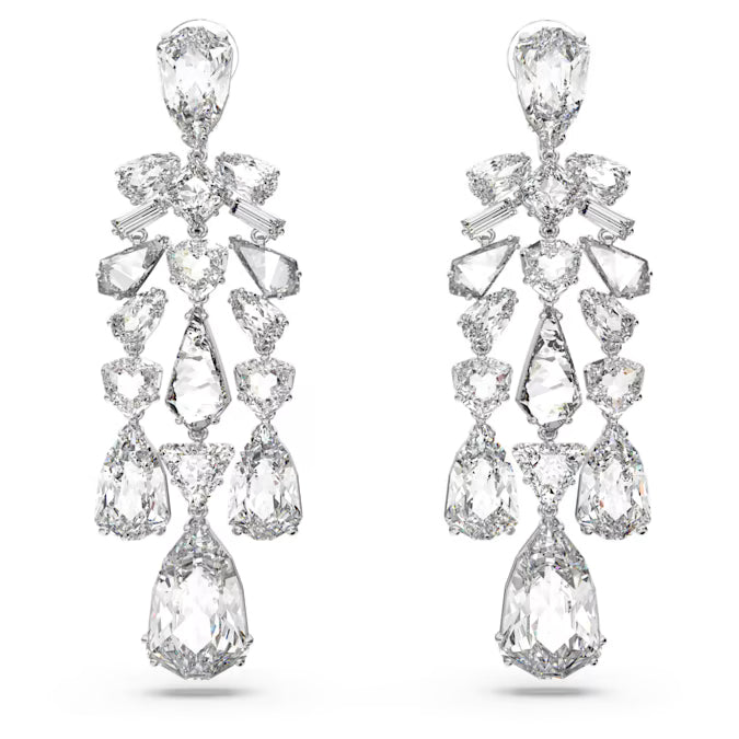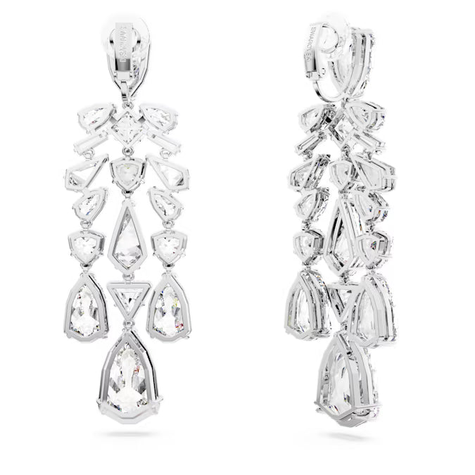 Empowered by a dazzling mix of crystals, these radiant Mesmera clip earrings were made for impact. The chandelier design is rhodium plated, with a cascade of stone cuts that effortlessly catch the light. A beautiful gift that can be paired with a matching necklace.