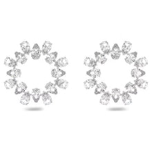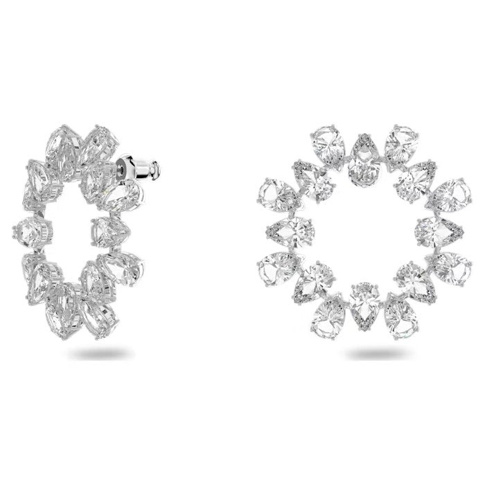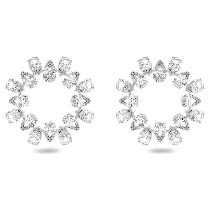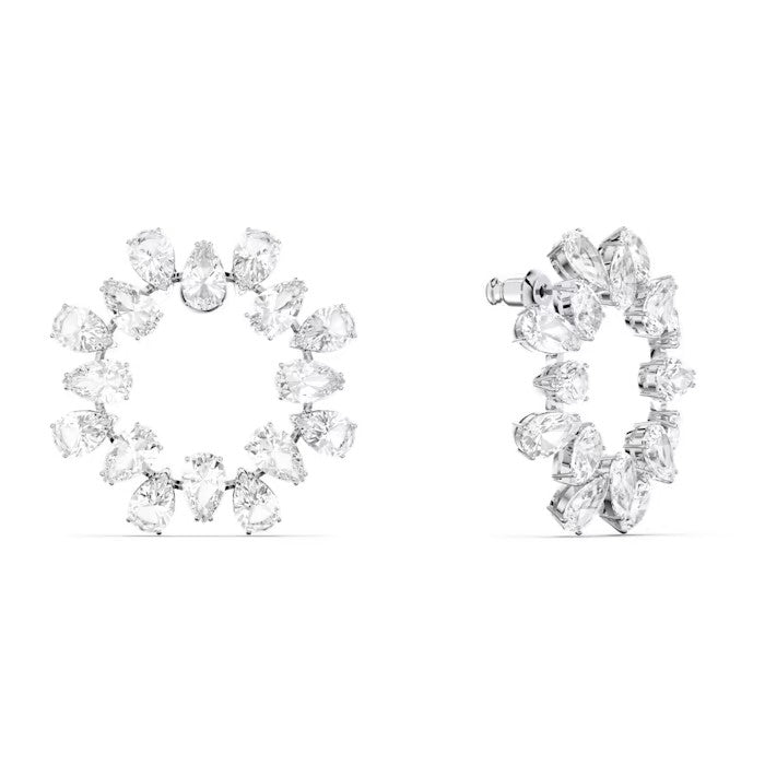 A sculptural show stopper, these crystal earrings are artfully formed from clear pear cut crystals and complete with a rhodium plated setting. Worn with bare shoulders, these crystal earrings can be paired with necklaces from the Millenia family for dazzling impact, or styled alone with a simple black V-neck to contrast with the circular design. This earrings are part of the Millenia family, designed by Creative Director Giovanna Engelbert for Collection I.