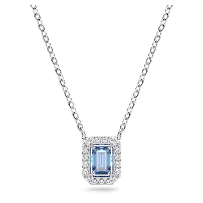 Expertly engineered to create a dancing stone mechanism, this alluring pendant moves with you. Featuring an elegant, blue, octagon-cut stone at its core, it's elegantly framed with smaller crystals and a rhodium-plated setting. Style yours with a simple, white T-shirt and jeans to turn an everyday look into something extraordinary. This pendant is part of the Millenia family, designed by Creative Director Giovanna Engelbert for Collection II.