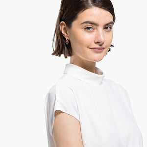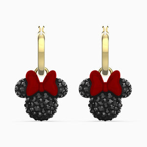 This delightful pair of pierced earrings by Swarovski captures the charming beauty of Minnie Mouse. Each earring displays the iconic character's silhouette in sparkling crystal, including her famous red bow. Numerous red and black crystals set into each earring twinkle and sparkle beautifully. Perfect to add playful charm to everyday outfits, these earrings are also a great gift giving inspiration for everyone who loves iconic Disney characters.