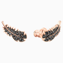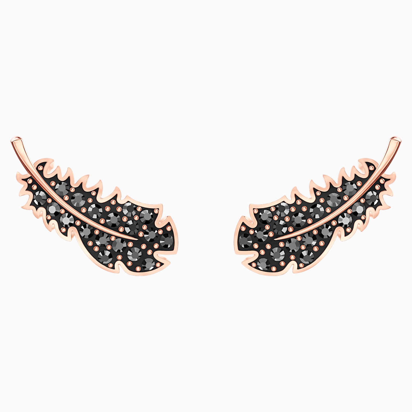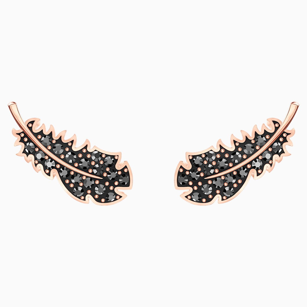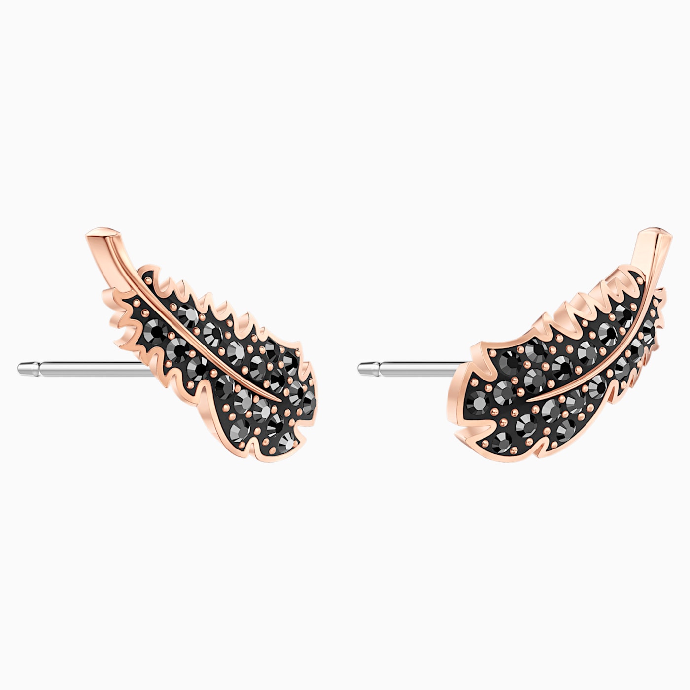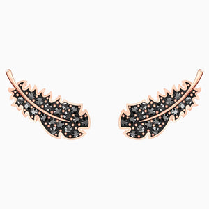 Whether you've been naughty or nice this year, you'll love this refined yet daring pair of pierced earrings. With their on-trend feather motifs and black crystal pavé, they will add a fashionable rose-gold tone plated touch to any day or evening ensemble.