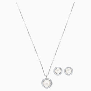 Offer your mom a Mother's Day gift she will treasure for years to come with this elegant pendant and earrings set. Each piece presents a shimmering Swarovski Crystal Pearl, accented with sparkling pavé. With their feminine silhouette and brilliant shine, these timeless treasures will be worn again and again. The pendant comes on a rhodium-plated chain.