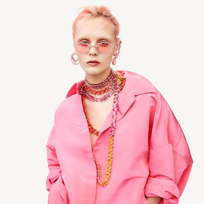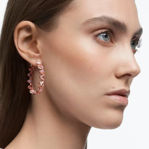These striking pink hoop earrings are a contemporary wardrobe essential. Showcasing triangle step cut crystals in vibrant pink, this pair is beautifully framed with a rose gold-tone plated setting. Wear yours with the matching bracelet for a dramatic yet refined everyday statement. These hoop earrings are part of the Millenia family, designed by Creative Director Giovanna Engelbert for Collection II.