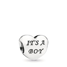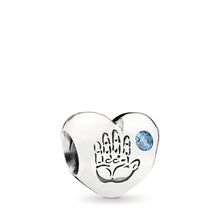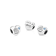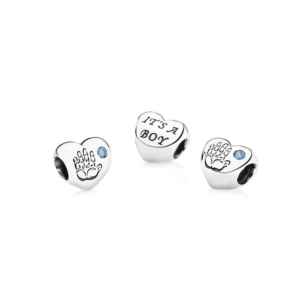 This cute charm makes a meaningful gift for someone who has just given birth to a beautiful baby boy. Made from sterling silver, the charm has been crafted into a heart shape and embellished with a small engraved handprint and blue cubic zirconia.