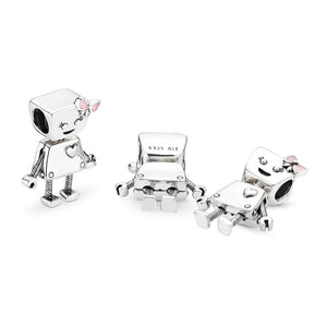 Bring your adventurous spirit to your bracelet with Bella Bot: a little robot charm with a big heart and lots of character. Skillfully crafted from sterling silver with moving arms and legs, she is a collectable icon who will capture your heart and move with you.