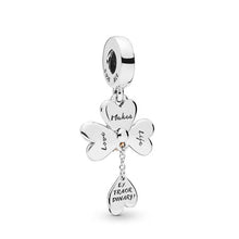 Add a touch of love and luck to your look with this two-tone dangle in Pandora Rose and sterling silver. The four-leaf clover shape is detailed with a pretty blush-pink ladybird and the engraving 'Love makes life extraordinary!'