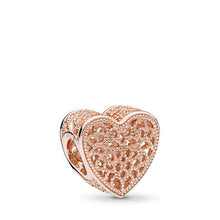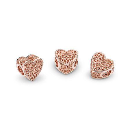 Bring some old-fashioned romance to your jewelery collection with this filigree heart charm. Finely crafted in Pandora Rose™ – a 14k rose gold-plated unique metal blend – with intricate open work, it makes an exquisite addition to your Pandora charm bracelet. Style it on its own or with other Pandora heart charms. A heartwarming gift for the ones you love.