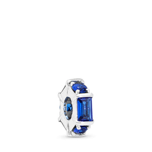 Intriguing sea blue crystals in alternating shapes – faceted baguette-cut and round brilliant-cut – are set in sterling silver on this geometric-inspired spacer.