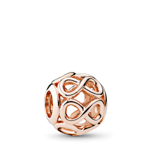 Sleek and simple in design yet carrying a wealth of meaning, this openwork charm in PANDORA Rose™ consists of multiple infinity signs highlighted by the rosy sheen of the unique metal blend. Linked together, the infinity signs are a beautiful way to symbolize everlasting feelings.