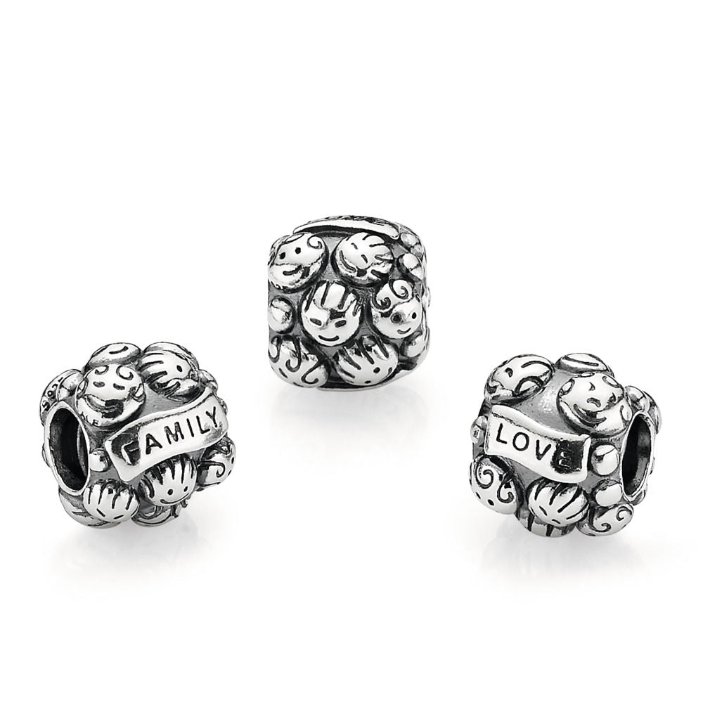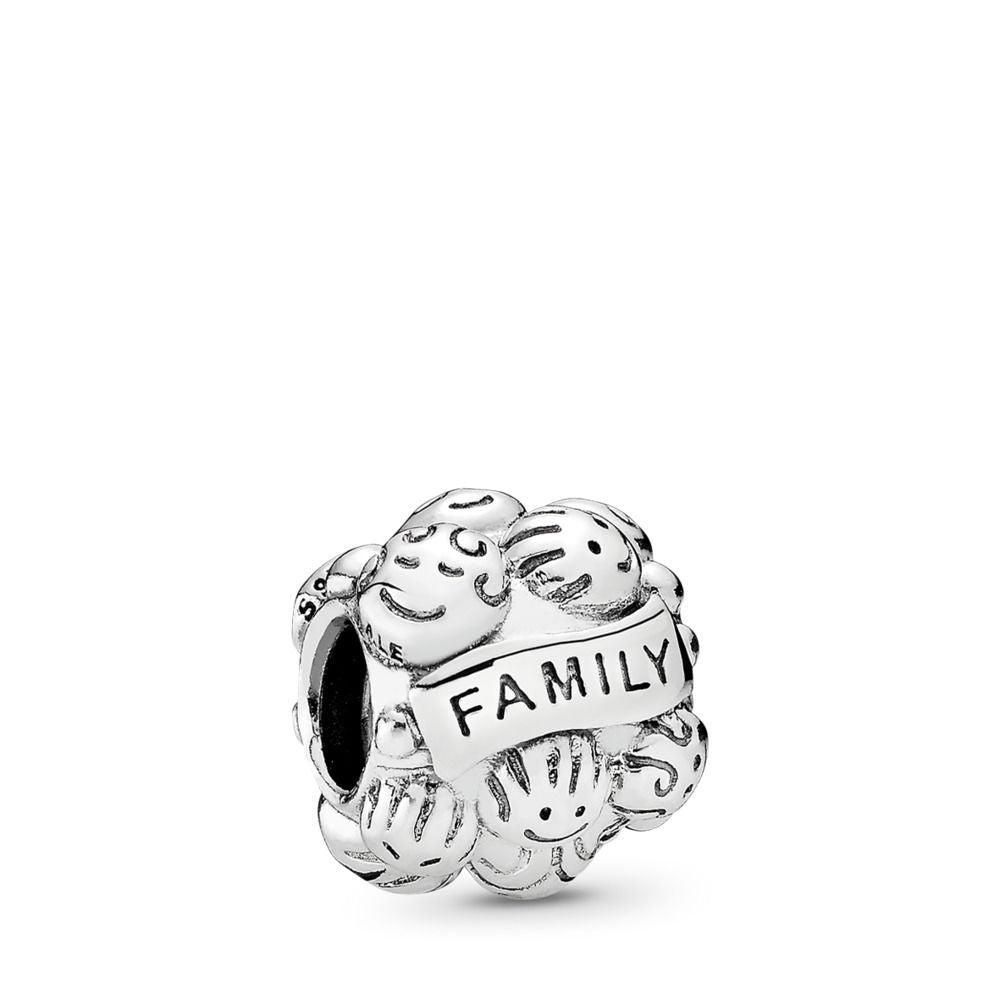 Celebrate unbreakable family bonds with this sterling silver charm. Adorned with smiling faces and with the word "FAMILY" engraved on the charm, it’s the perfect way to remember your family and the values you share.