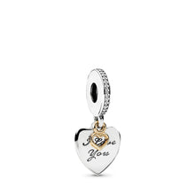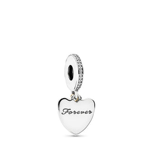 Let your special someone know just how much she means to you with this elegant two-tone dangle charm. Crafted from sterling silver with a 14K gold heart embellishment, cubic zirconia (CZ) stones, and the engraving "I Love You Forever," it is sure to express your love in the most beautiful way.