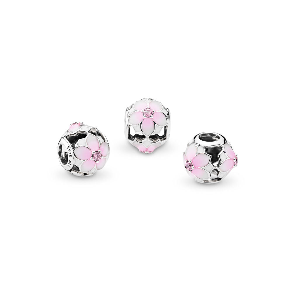Pandora Magnolia Bloom Charm, Pale Cerise Enamel & Pink CZ