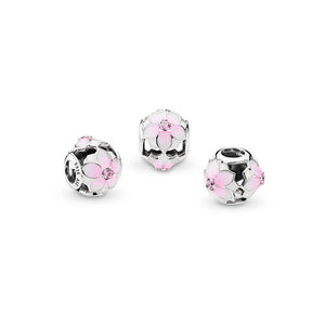 This ornate sterling silver charm looks absolutely stunning thanks to its intricate floral details. Lovingly hand-finished, it features a delicate color scheme of shaded pink and white enamel.
