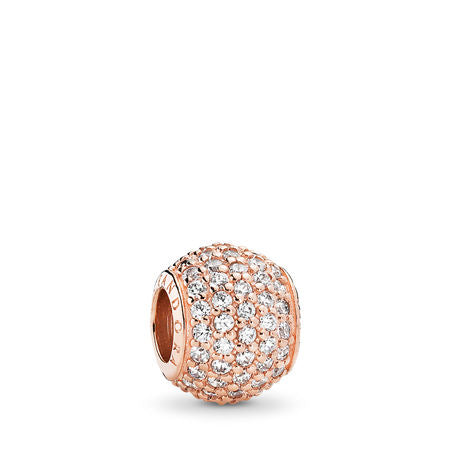 PANDORA’s bestselling pavé charm is now presented in delicate PANDORA Rose™. The pink tone provides a striking background to the 94 hand-set cubic zirconia stones, offsetting their beautiful sparkle.