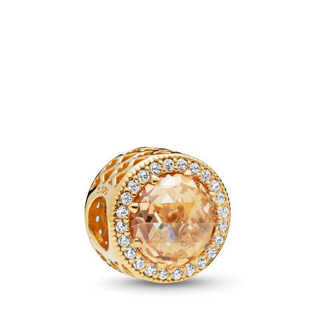 This button-inspired PANDORA Shine™ charm adds a warm, sparkling glow to your bracelet thanks to the 18k gold-plated sterling silver and golden colored stones. It is sumptuous from every angle.