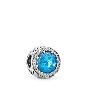 With its innovative shape, cutout heart details and small, sparkling stones that frame a radiant sky-blue crystal, this dazzling sterling silver charm has a truly lavish expression. Combine it with the matching ring for a stunning set fit for even the most glamorous event.