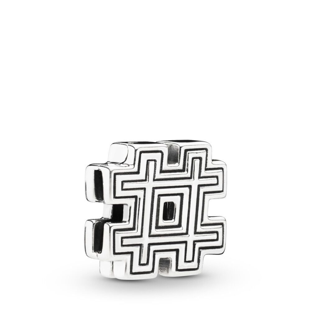Make a statement with this hashtag clip on charm in sterling silver. The Pandora Reflexions piece connects your online and offline life, and accentuates everything you spell with its grid-like form. Add it to the collection's flat mesh bracelet – available in three beautiful metals – together with your favourite letter charms to bring new life to the words or names that mean the most.