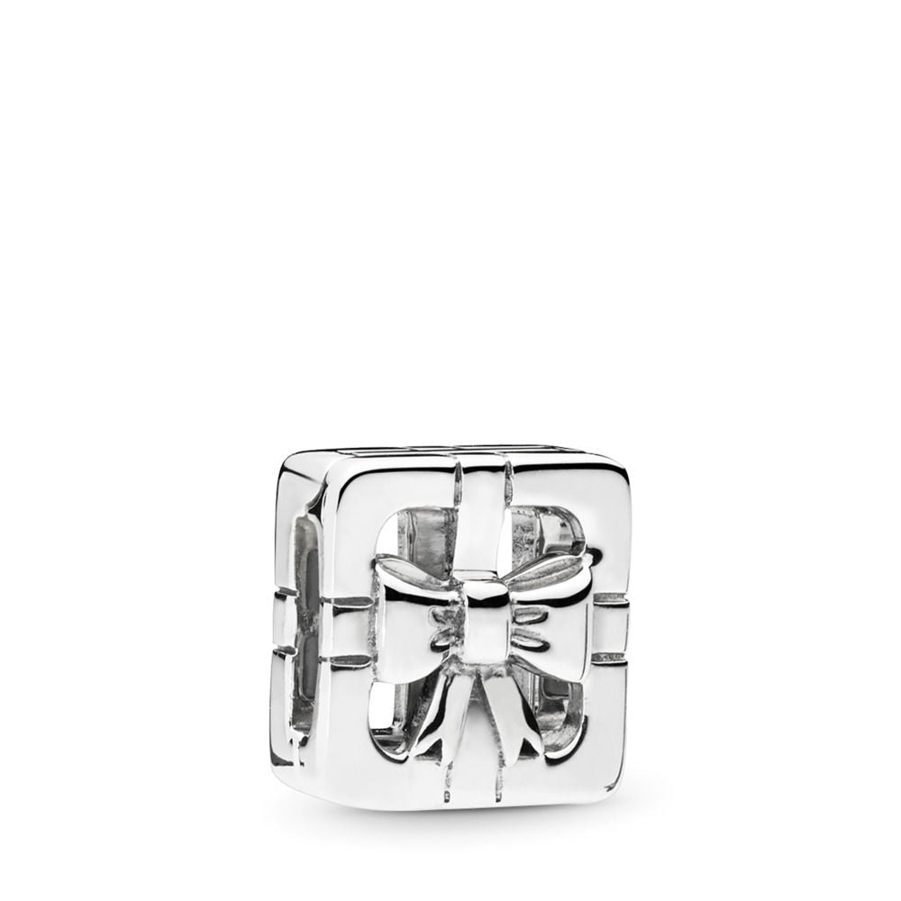 ift yourself or a loved one this sterling silver clip charm. The openwork present design is wrapped with a beautiful bow. For PANDORA Reflexions™ bracelets.