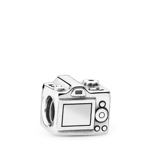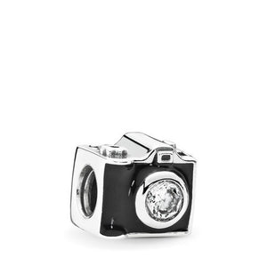 Shiny black enamel and a sparkling cubic zirconia stone acting as the camera lens bring a sense of nostalgia to this quirky camera charm. This is a great memento of all the places you have seen and captured forever.