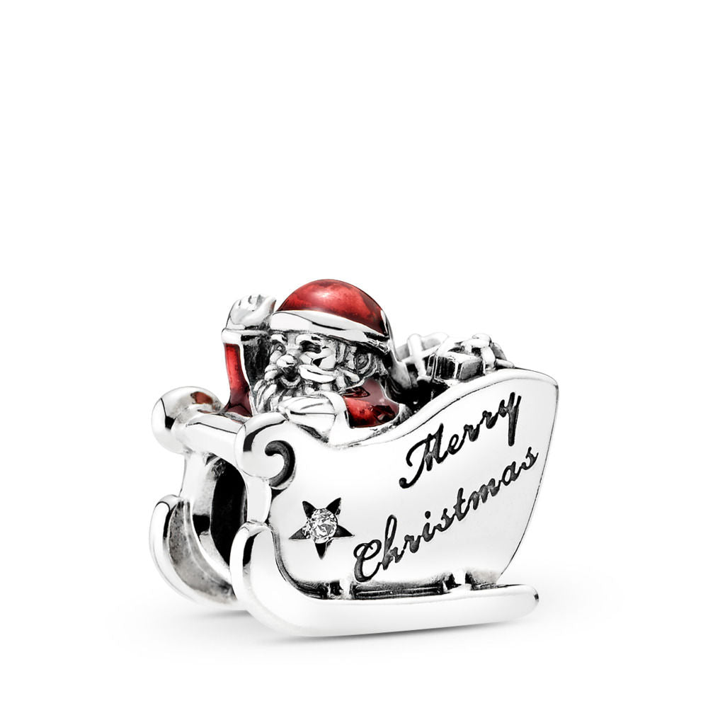 PANDORA's cheerful sterling silver Santa charm extends warm Christmas greetings to all. This beautifully detailed charm features Santa in his sleigh ready to deliver gifts to all the good boys and girls.