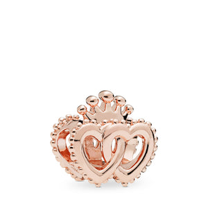 Two hearts united in PANDORA Rose™ are given a unique royal twist with a finely crafted crown.