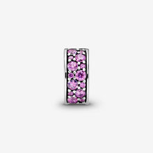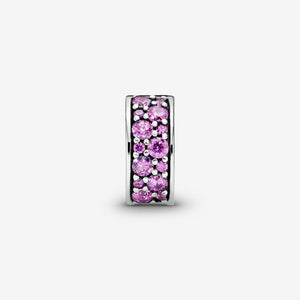 Pavé-set stones glitter in this purple-toned shimmering sterling silver clip. This stylish clip also features an innovative patent pending silicone design which makes the clip stay firmly in place on your bangles and leather bracelets. Due to the unique silicone design, this clip will not fit on top of the threading on the traditional snake chain bracelet.