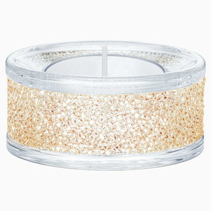Embellished with over 1,500 Swarovski crystals set in the Crystal Rocks technique, this contemporary glass tea light holder shines brightly in golden tones. Certain to add sparkle to any room; it will create a glamorous atmosphere, day and night. A perfect gift for a loved one. Decoration object. Not a toy. Not suitable for children under 15.