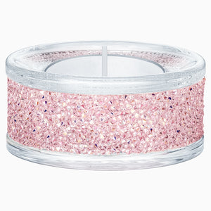 Embellished with over 1,500 Swarovski crystals set in the Crystal Rocks technique, this contemporary glass tea light holder shines brightly in soft pink tones. Certain to add sparkle to any room; it will create a glamorous atmosphere, day and night. A perfect gift for a loved one. Decoration object. Not a toy. Not suitable for children under 15.
