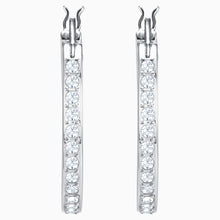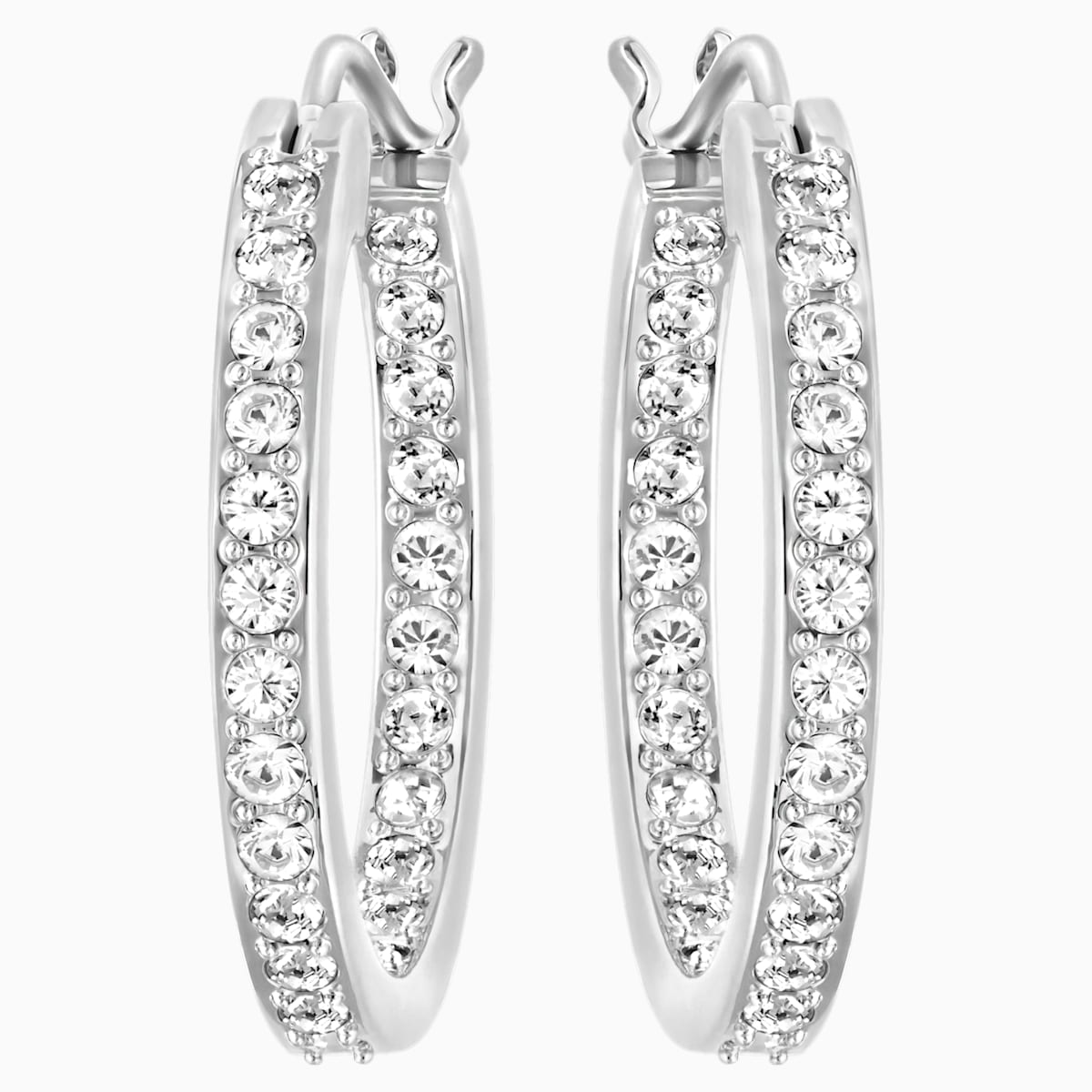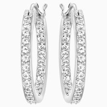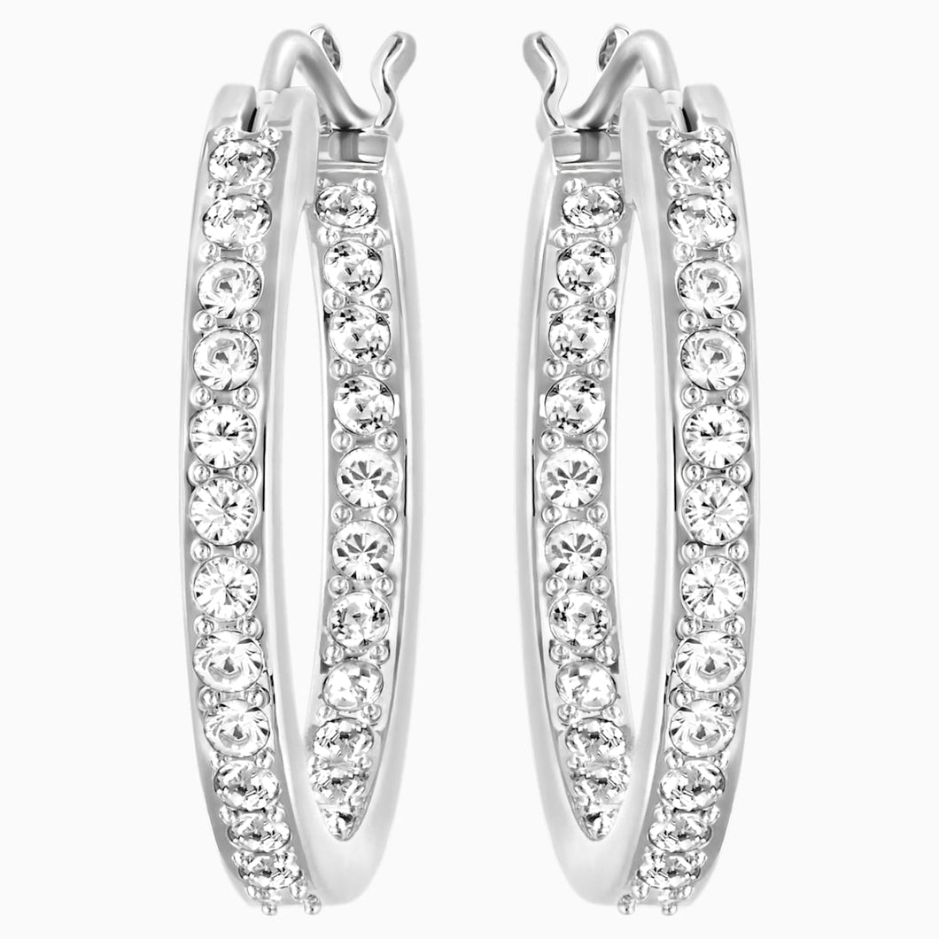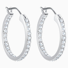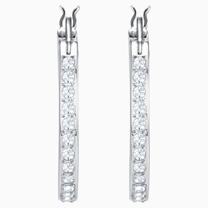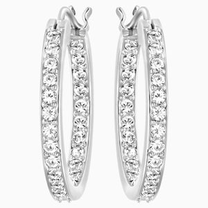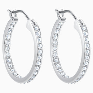 This classic pair of earrings is easy to wear on any occasion. The outer edge of each rhodium-plated hoop is delicately embellished with clear crystal pavé, lending a soft sparkle to this timeless design.