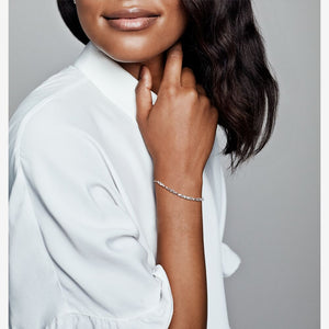 Reflect the journey you are on with this sterling silver bracelet. The zig-zag pattern of clear baguette-cut stones winds elegantly around your wrist and the sliding clasp ensures the perfect fit.